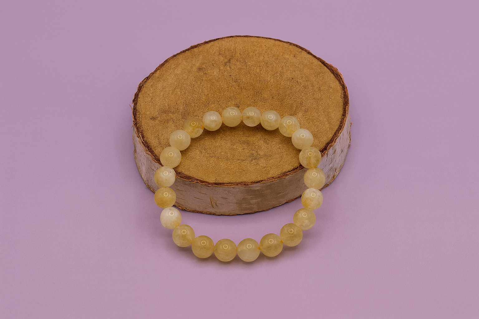 Bracelet en Citrine naturelle – pierre du soleil et de la joie, ce bijou diffuse énergie positive, confiance et réussite. Ses perles rondes jaune doré, montées sur un fil élastique, illuminent votre poignet avec élégance.